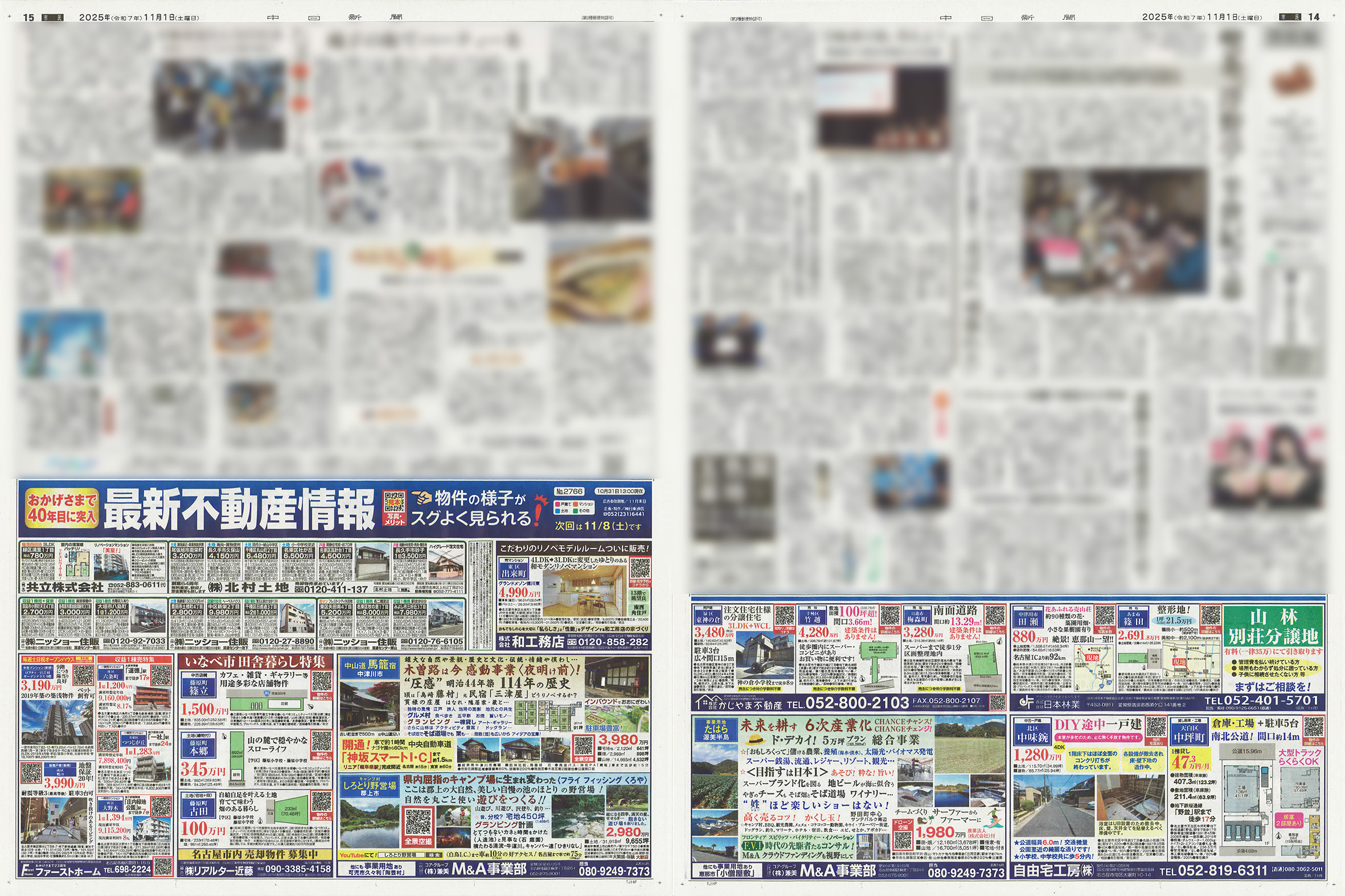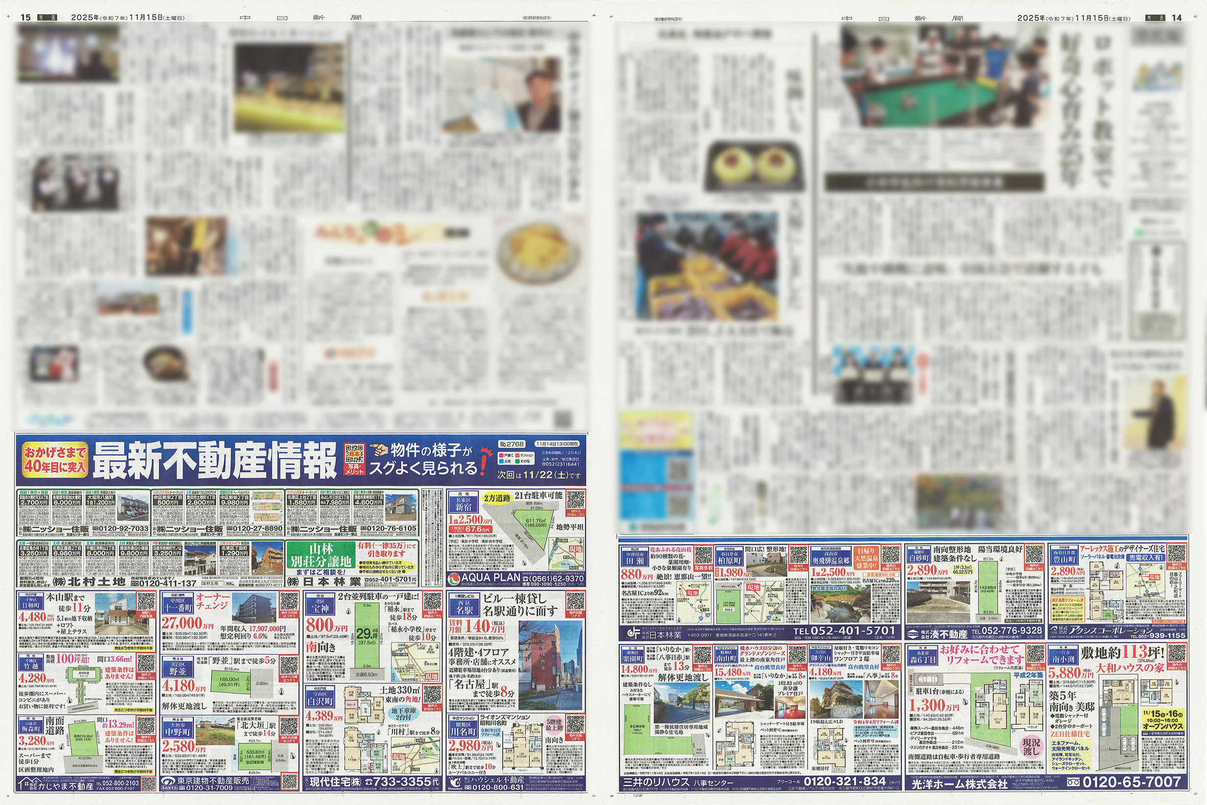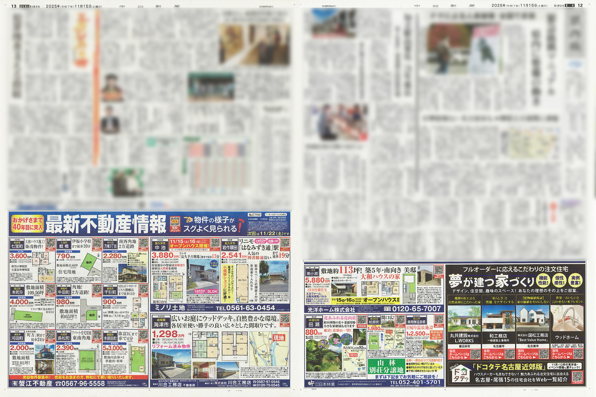 11/15の中日新聞市民版、全尾張版「最新不動産情報」企画がおかげを持ちまして完売致しました。ありがとうございました。