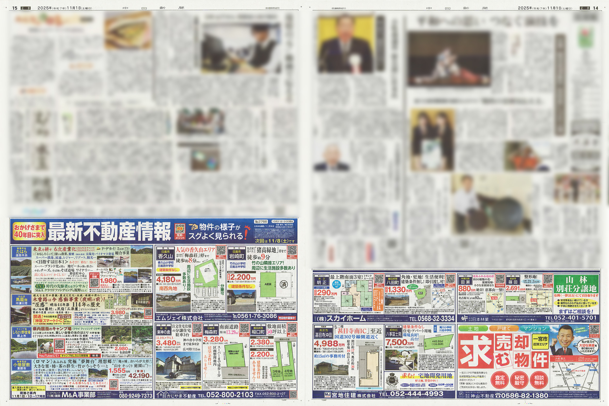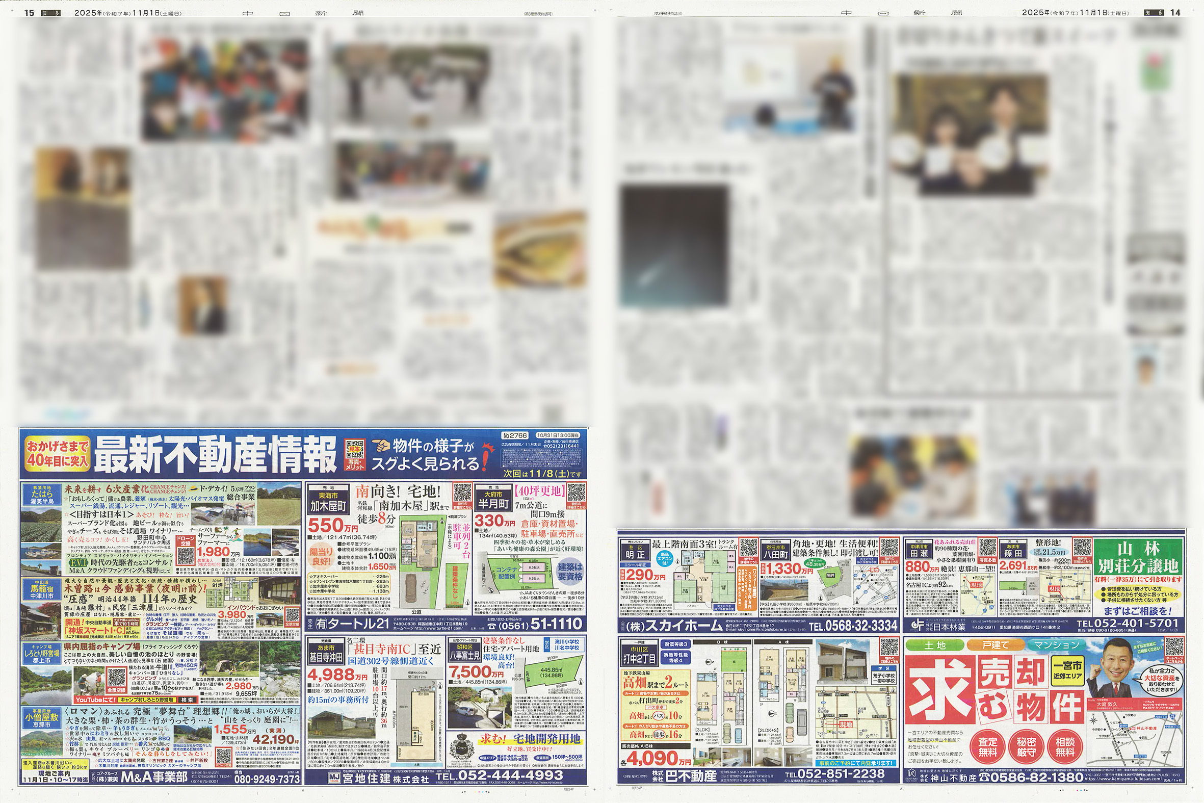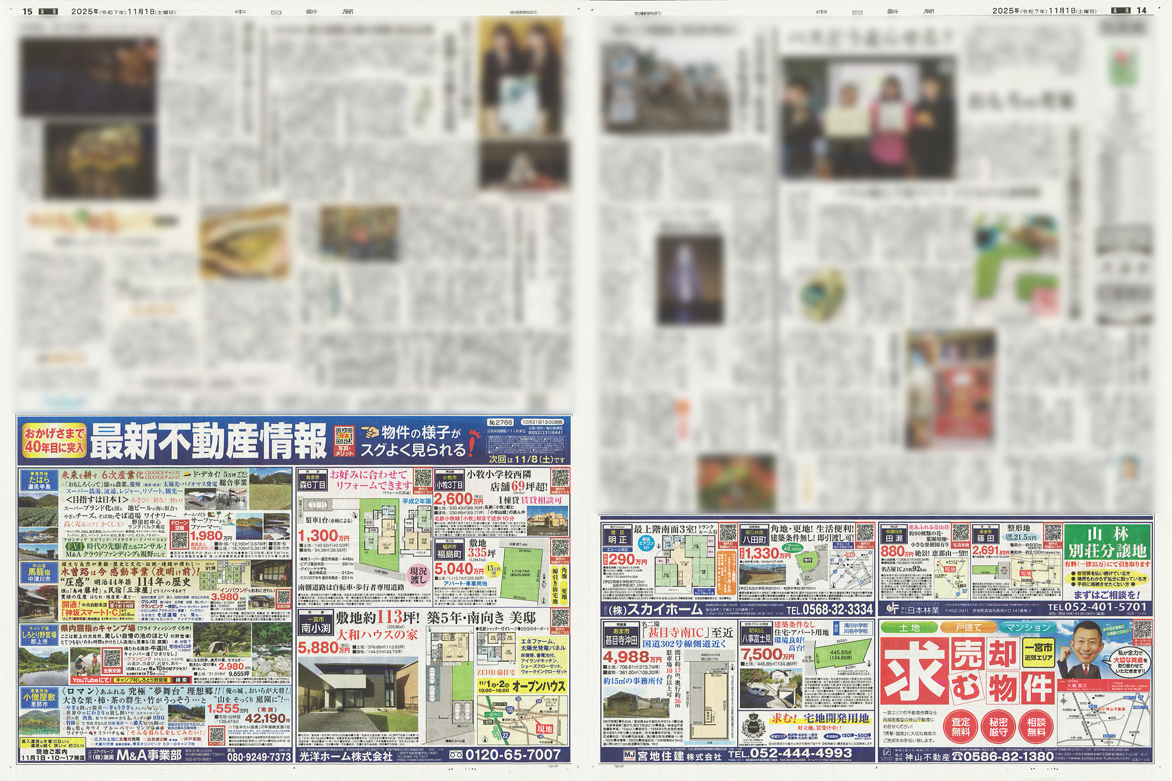11/15の中日新聞市民版、全尾張版「最新不動産情報」企画がおかげを持ちまして完売致しました。ありがとうございました。