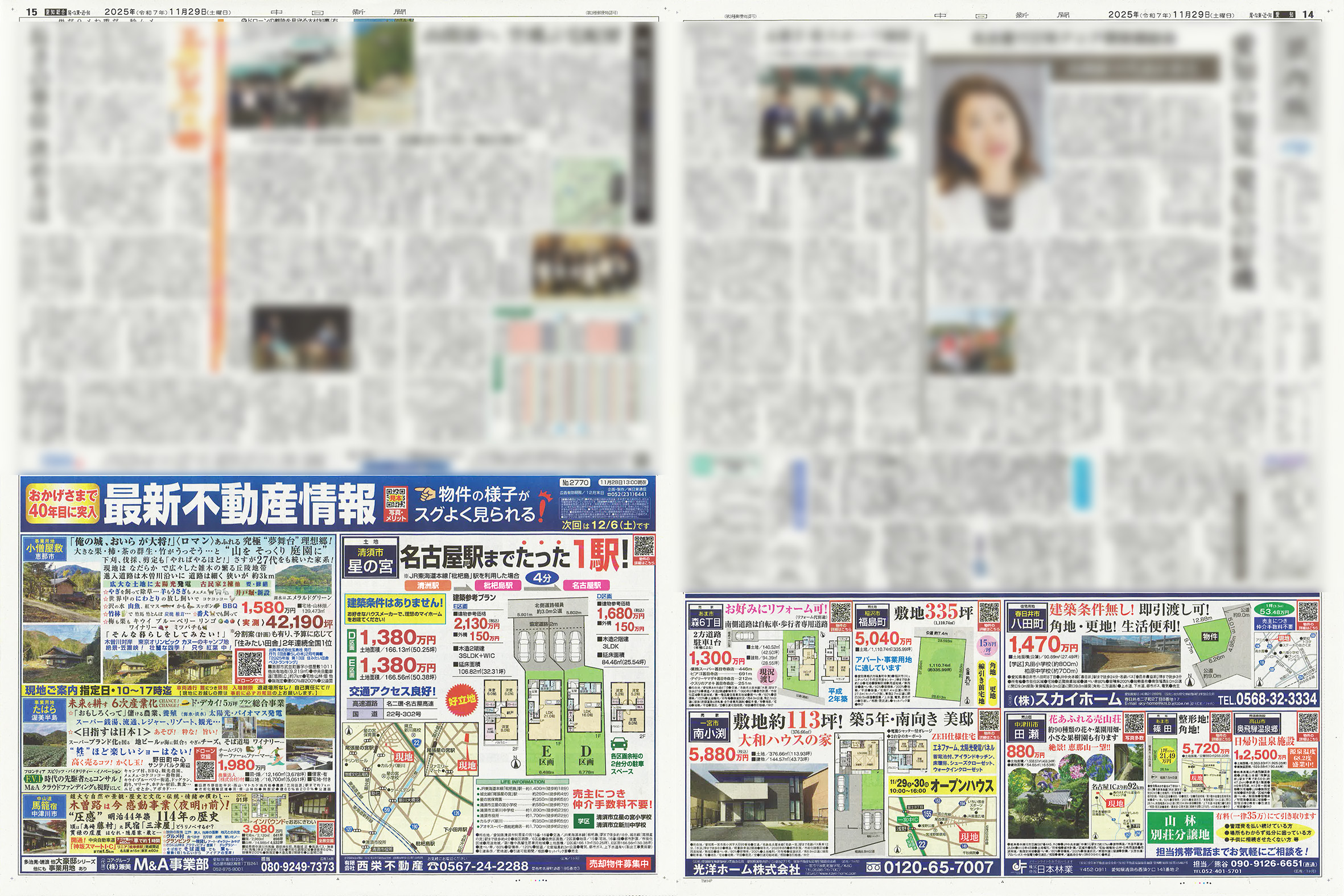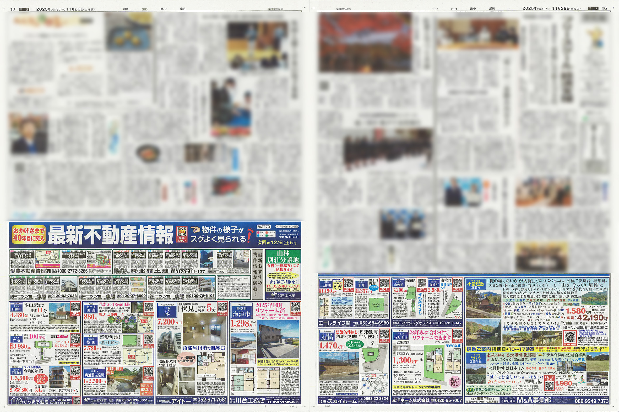 11/29の中日新聞市民版、全尾張版「最新不動産情報」企画がおかげを持ちまして完売致しました。ありがとうございました。