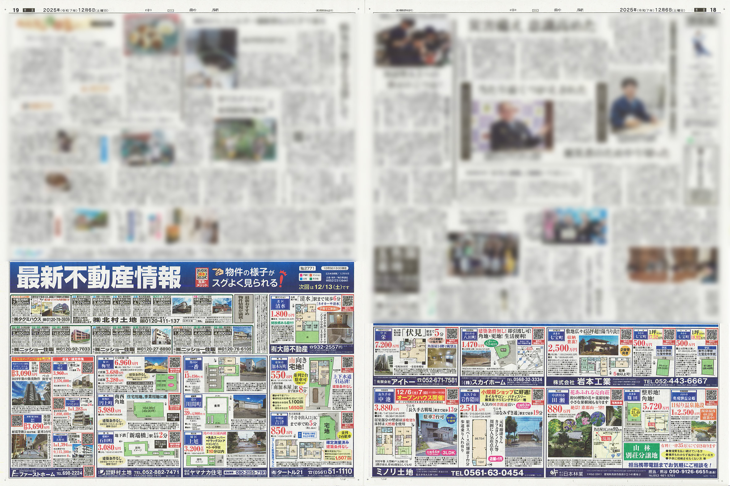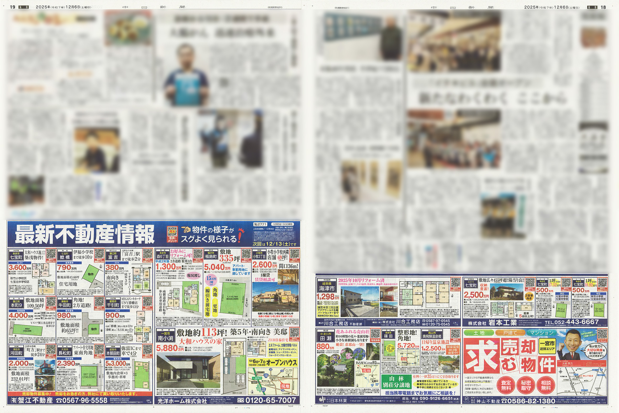 12/6の中日新聞市民版、全尾張版「最新不動産情報」企画がおかげを持ちまして完売致しました。ありがとうございました。