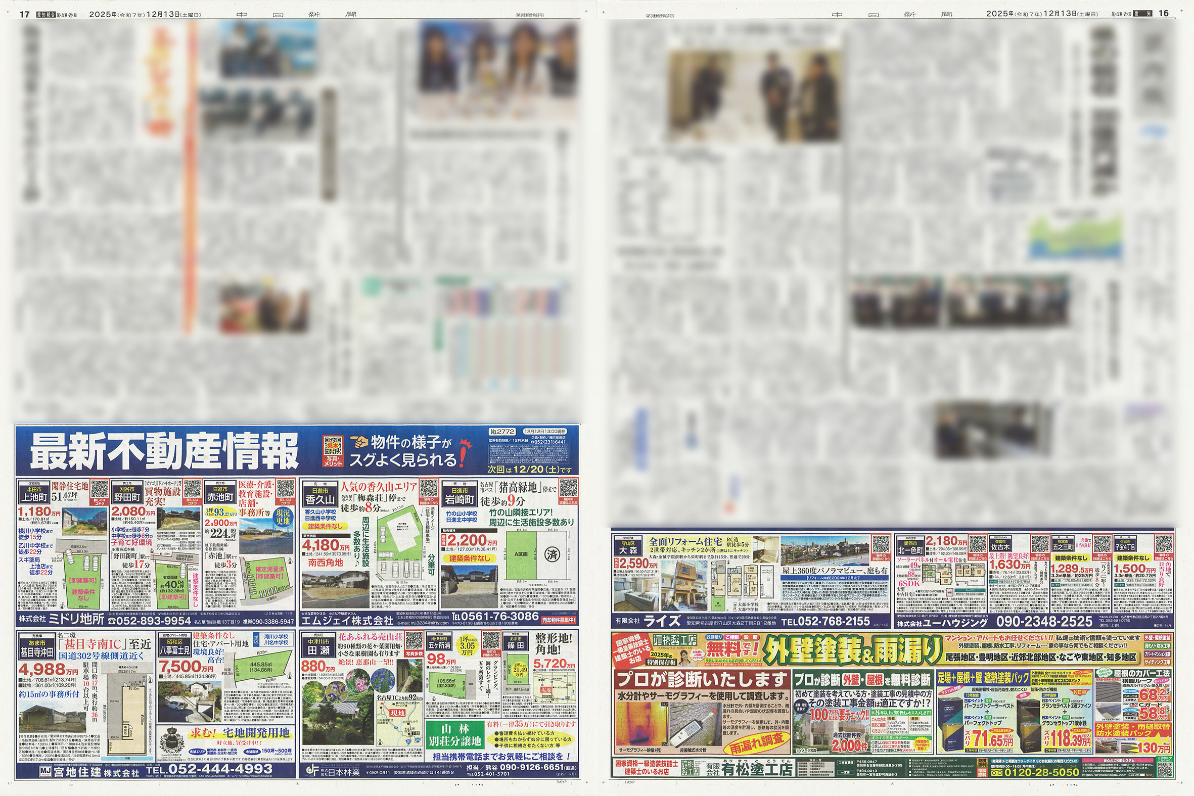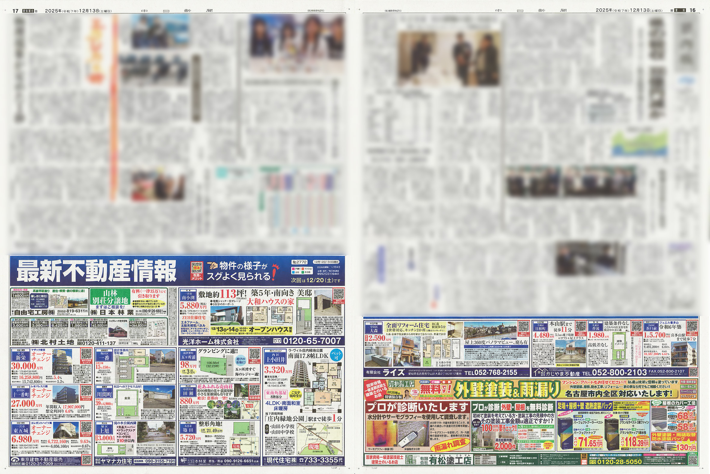 12/13の中日新聞市民版、全尾張版「最新不動産情報」企画がおかげを持ちまして完売致しました。ありがとうございました。