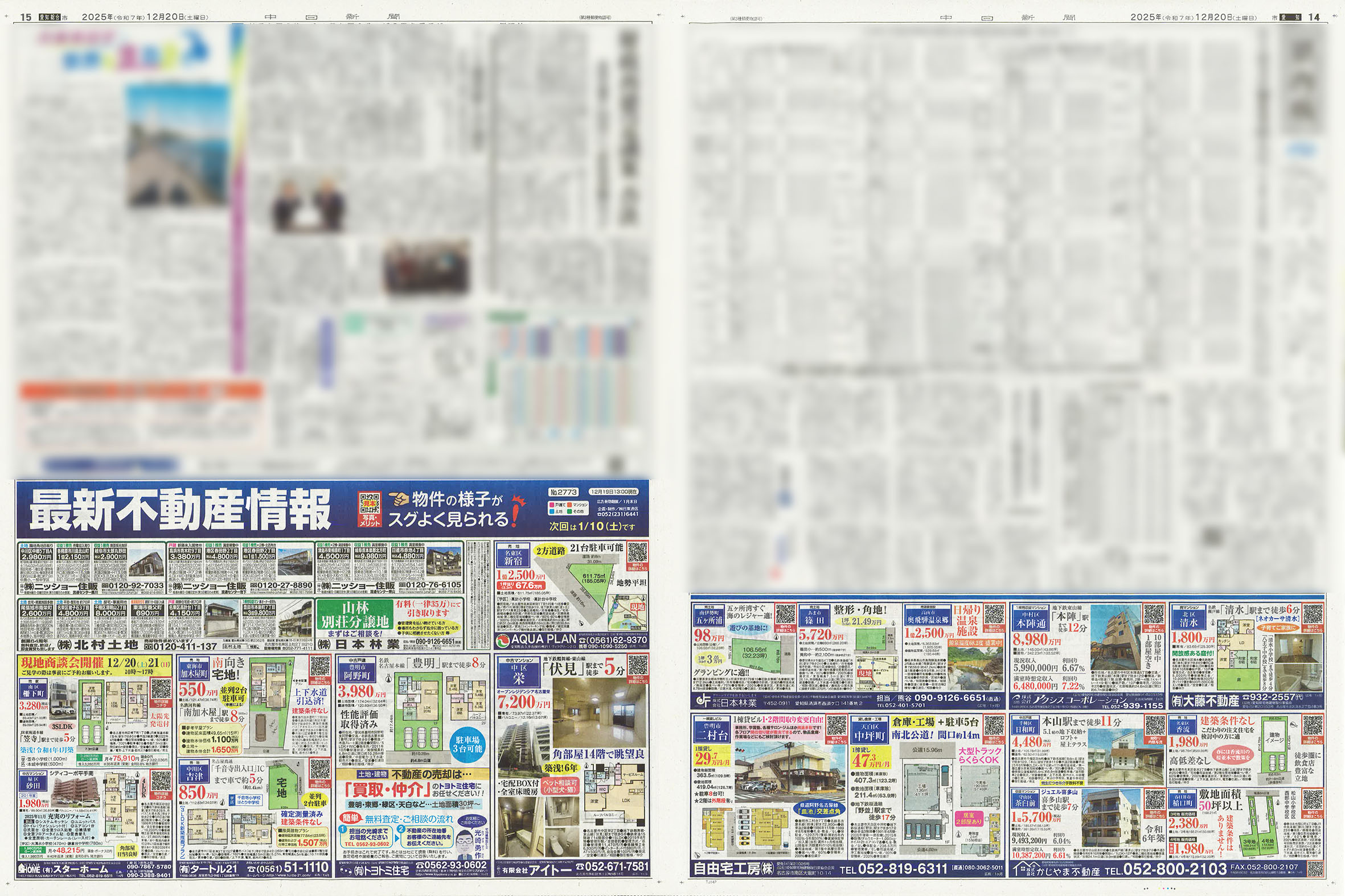 12/20の中日新聞市民版、全尾張版「最新不動産情報」企画がおかげを持ちまして完売致しました。ありがとうございました。