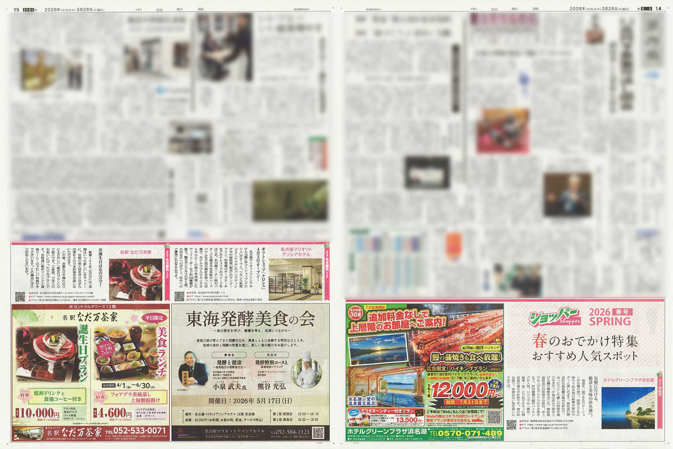 中日新聞市民版・尾張版にショッパー特別版(全7段)にて「春のおでかけ特集 おすすめ人気スポット」特集が掲載されました。