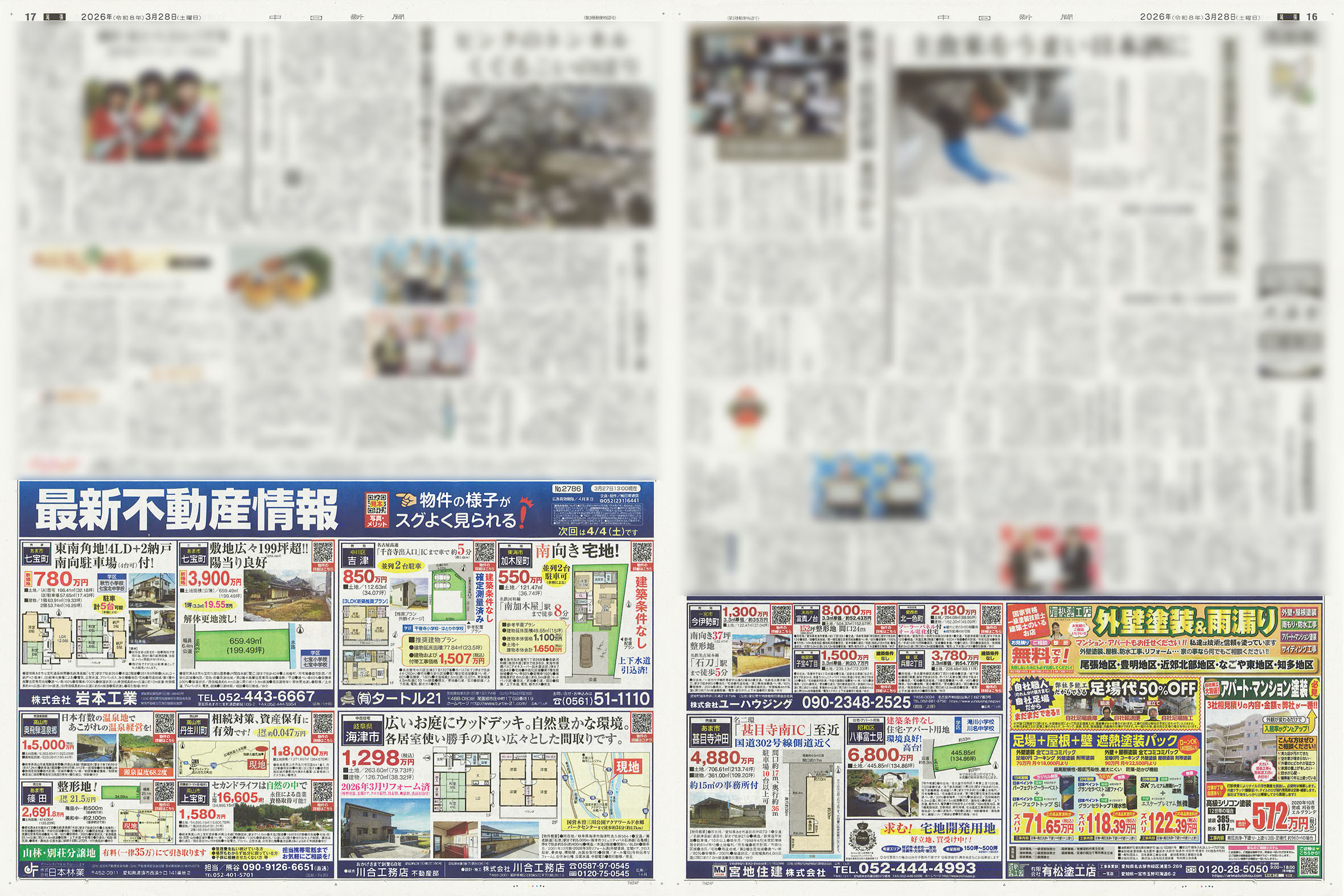 3/28の中日新聞市民版、全尾張版「最新不動産情報」企画がおかげを持ちまして完売致しました。ありがとうございました。