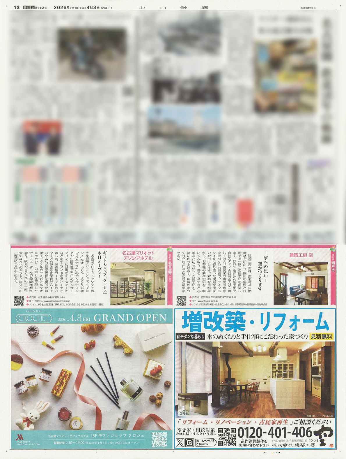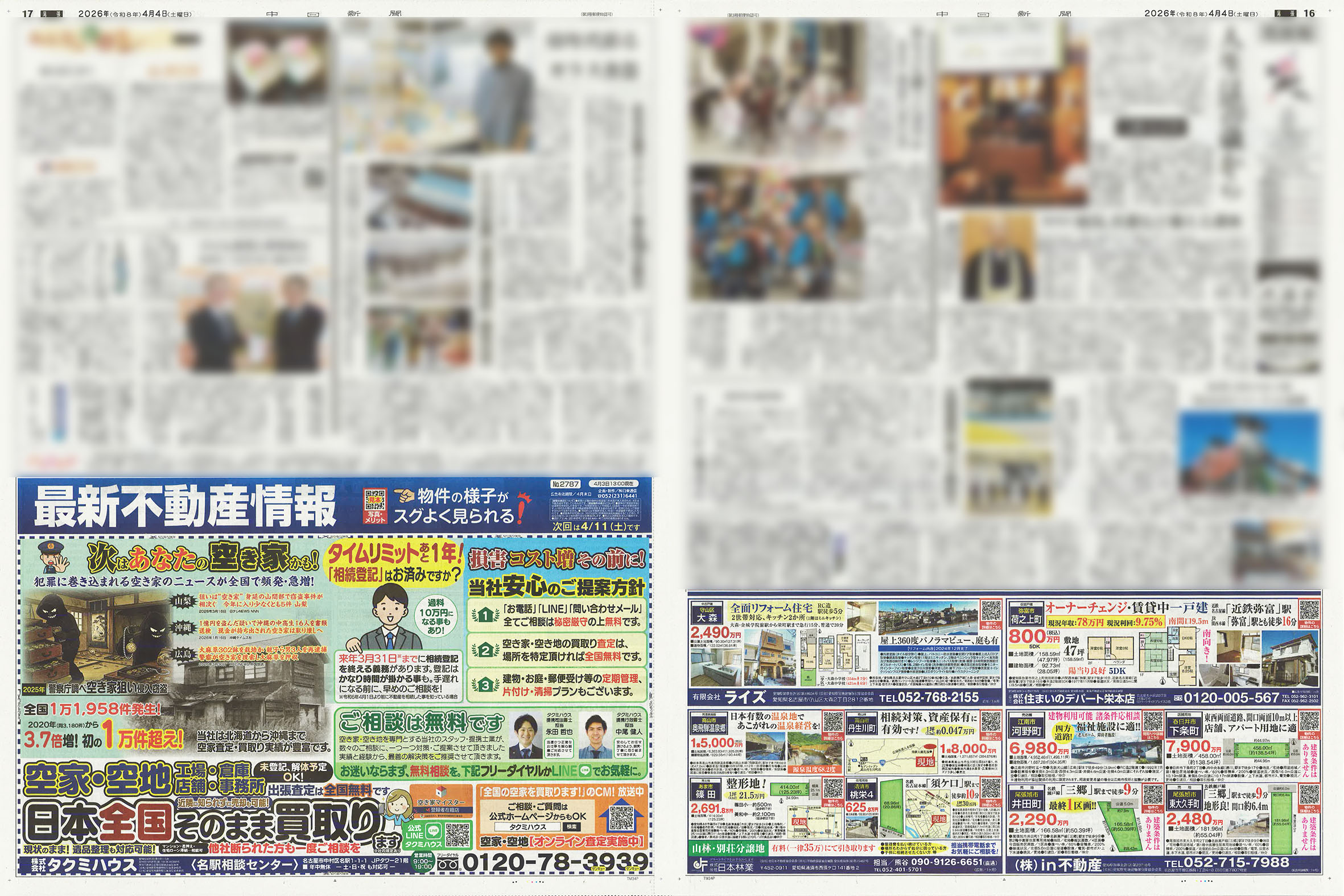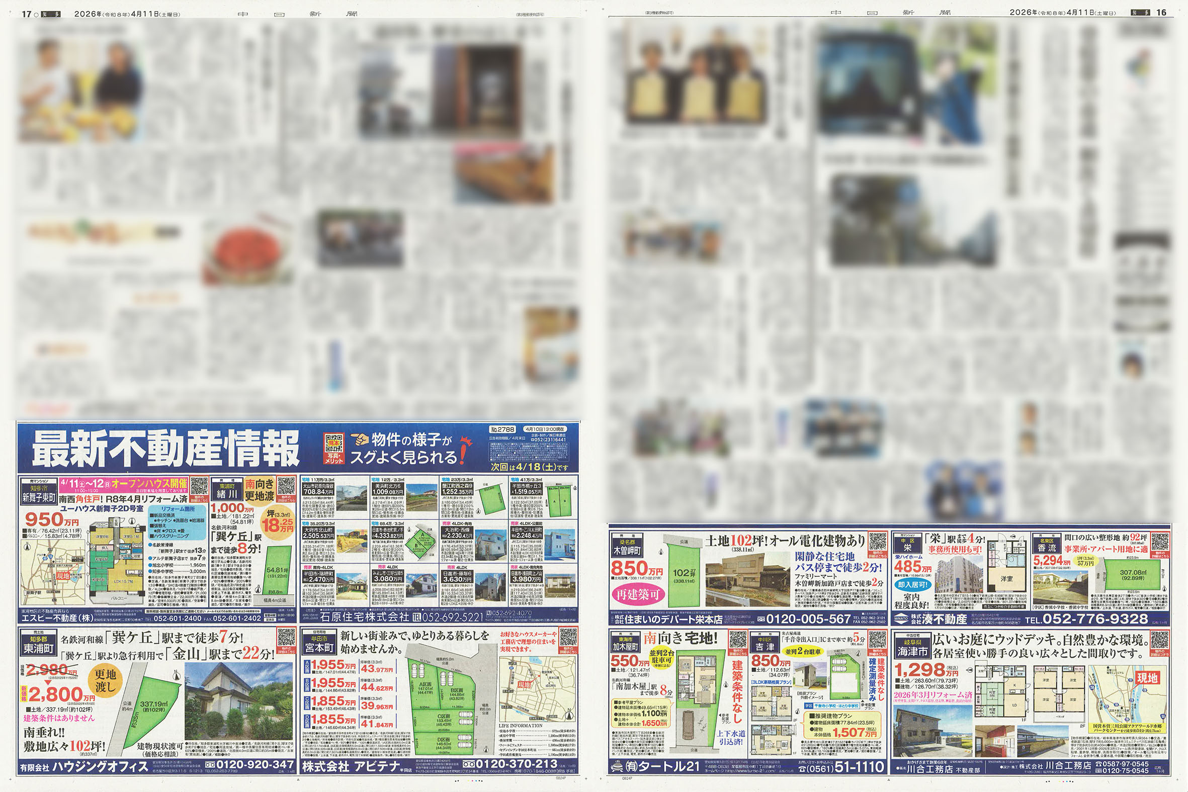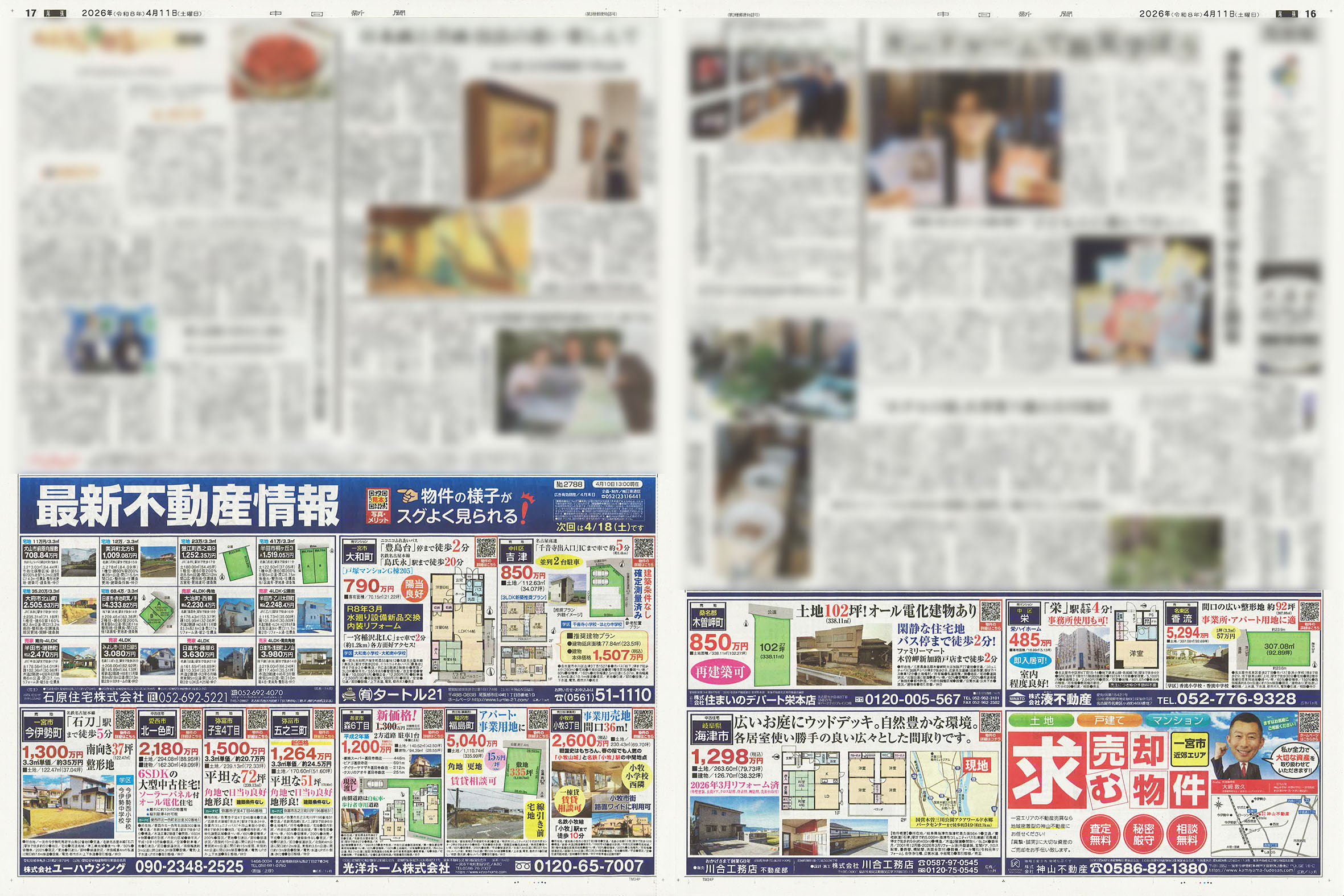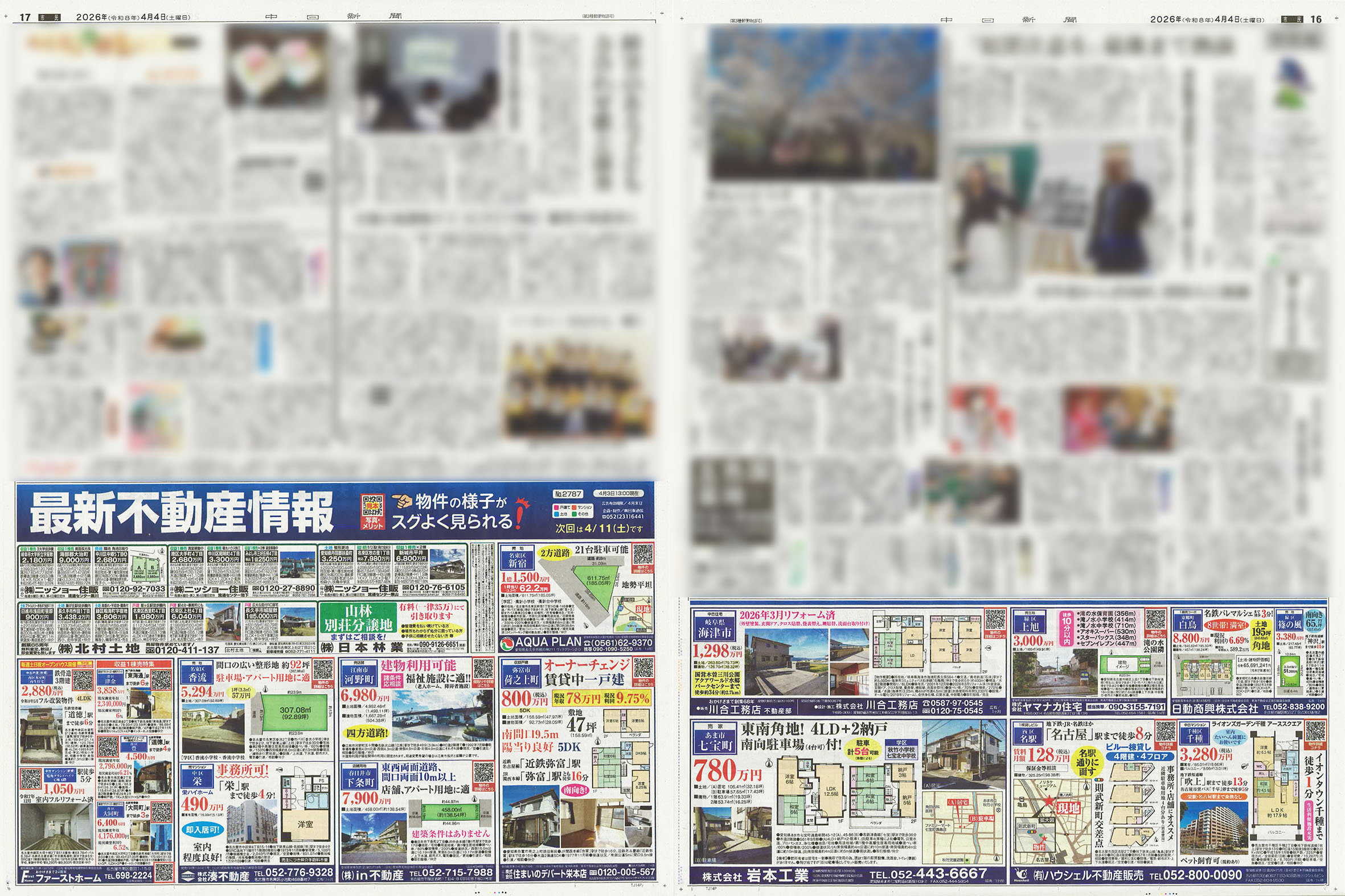 4/11の中日新聞市民版、全尾張版「最新不動産情報」企画がおかげを持ちまして完売致しました。ありがとうございました。