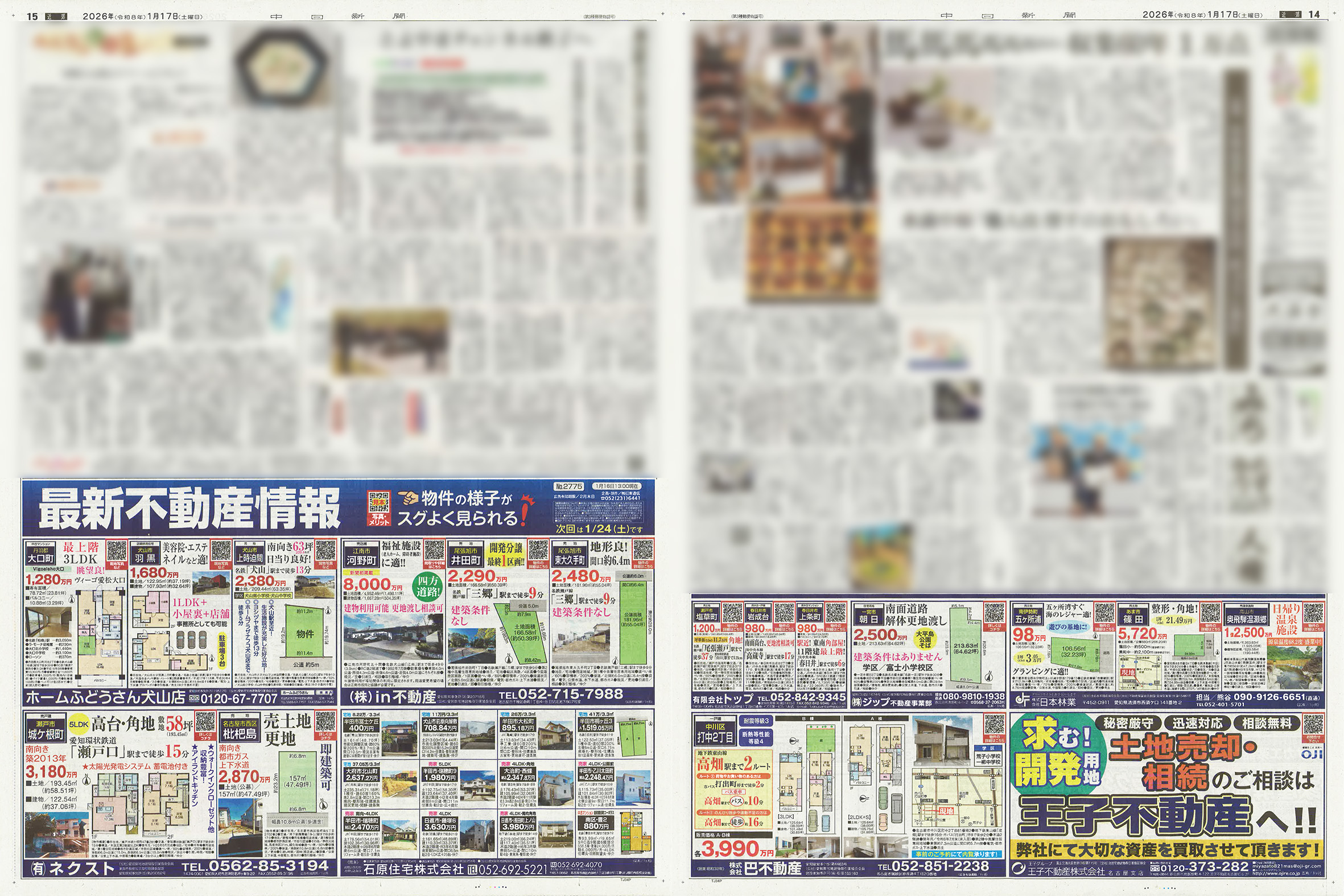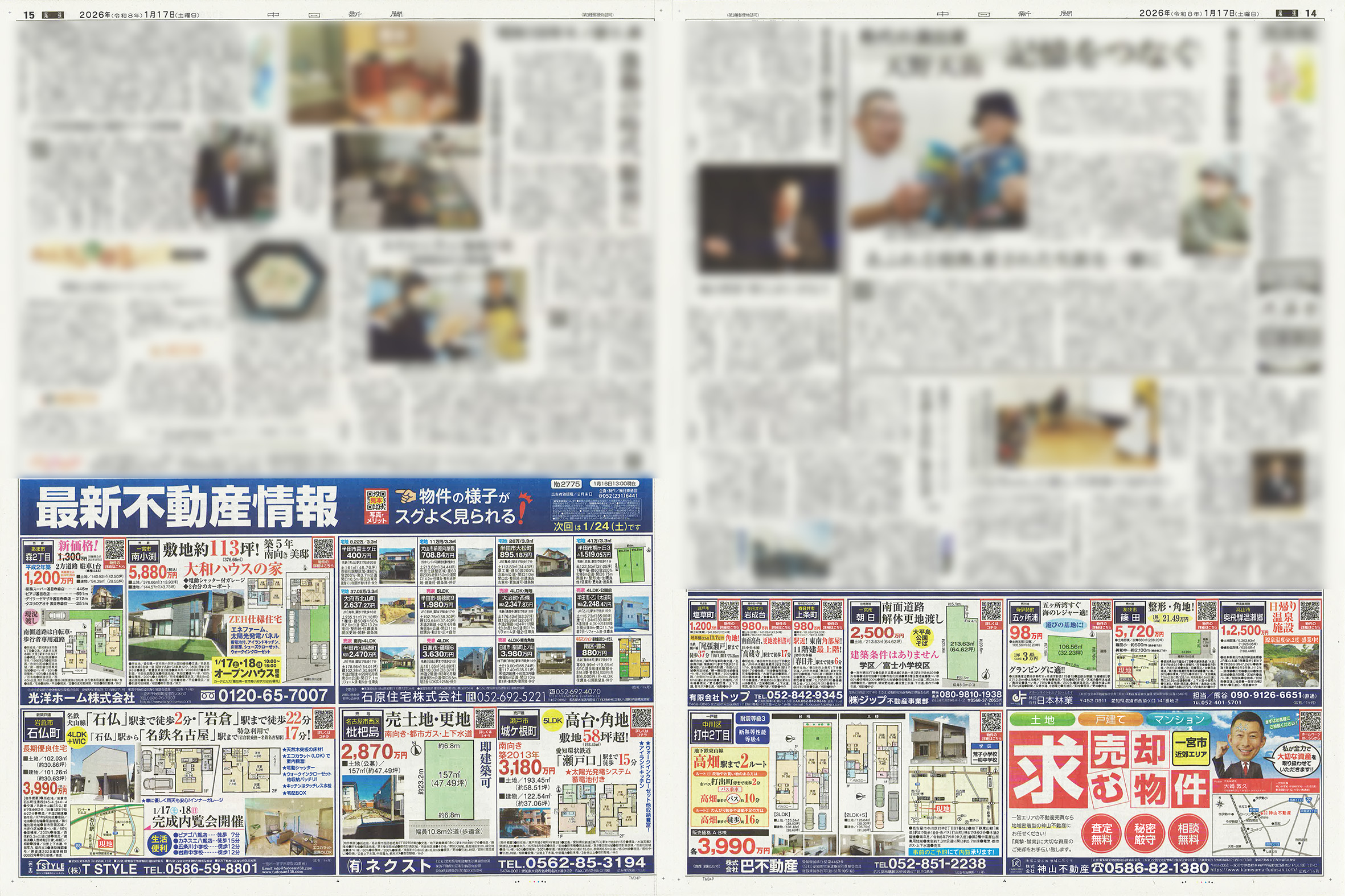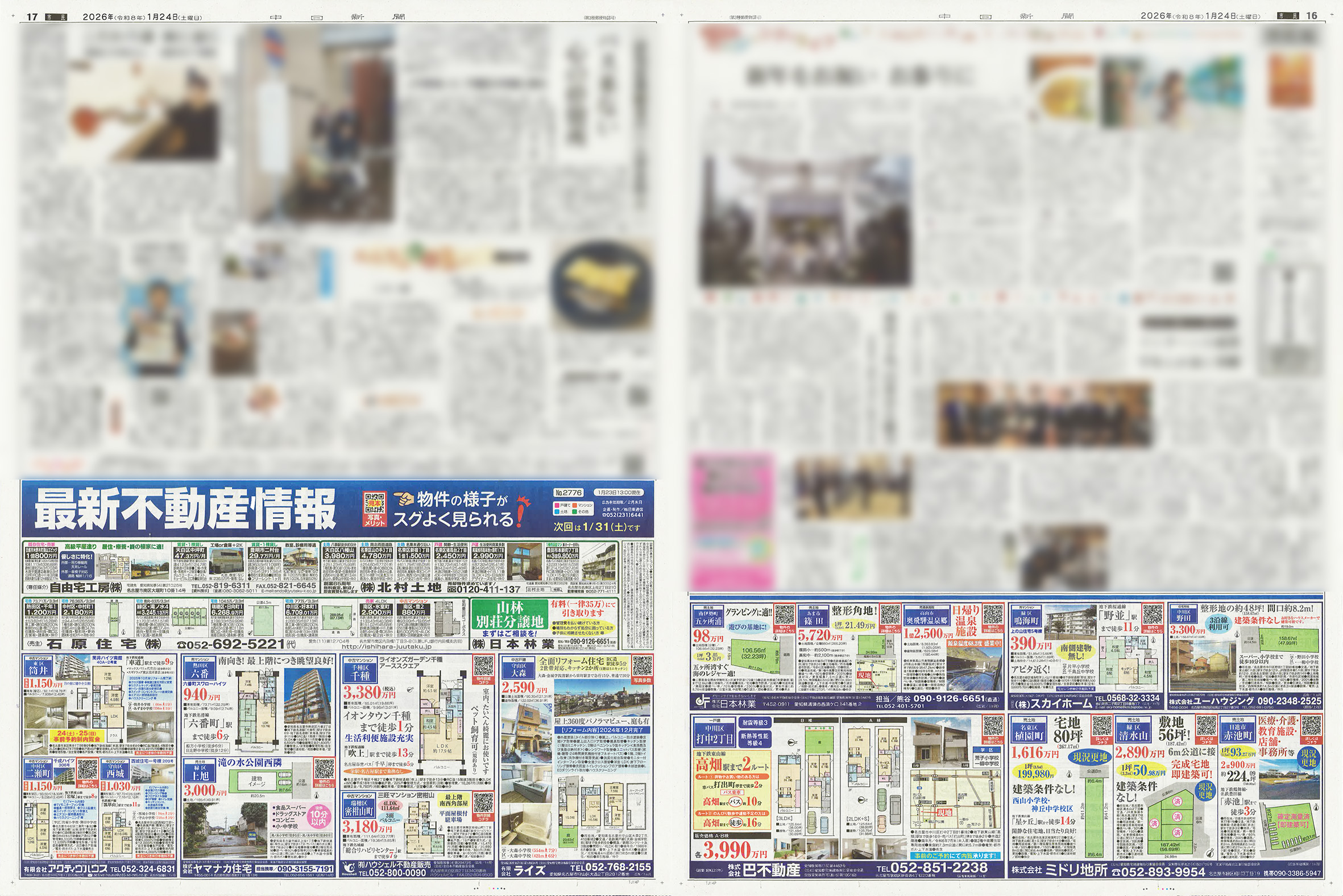 1/17の中日新聞市民版、全尾張版「最新不動産情報」企画がおかげを持ちまして完売致しました。ありがとうございました。