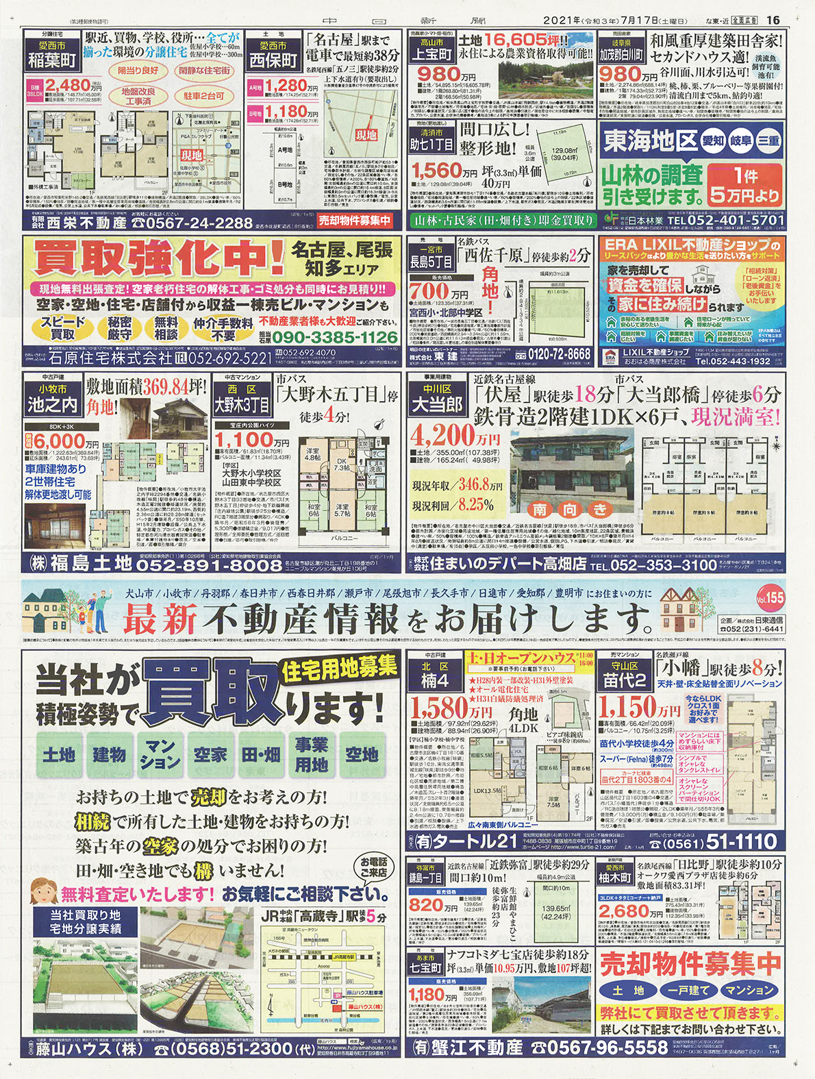 5/21の中日新聞市民版、全尾張版「最新不動産情報」企画がおかげを持ちまして完売致しました。ありがとうございました。