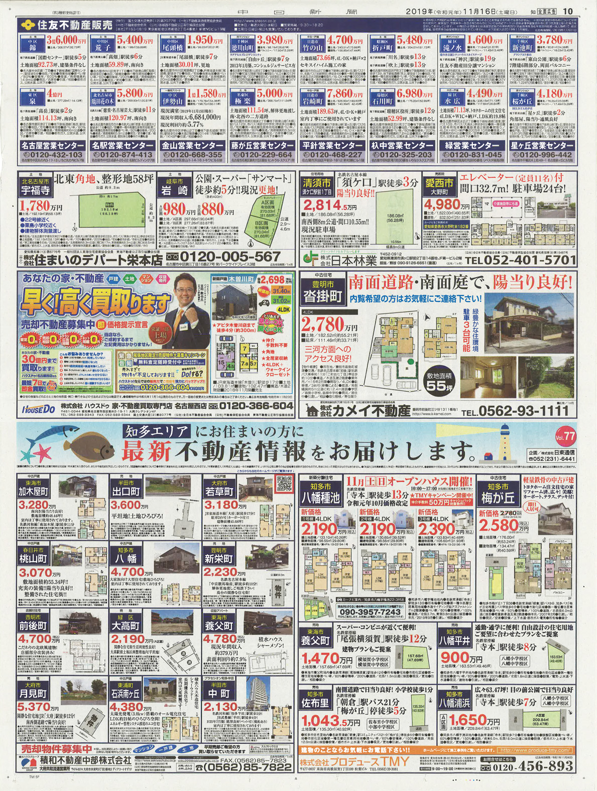 中日新聞市民版に最新不動産情報(全15段/カラー)、全尾張版(尾張A版・近郊通し版・知多版)に最新不動産情報(各版全15段/カラー)が掲載されました。