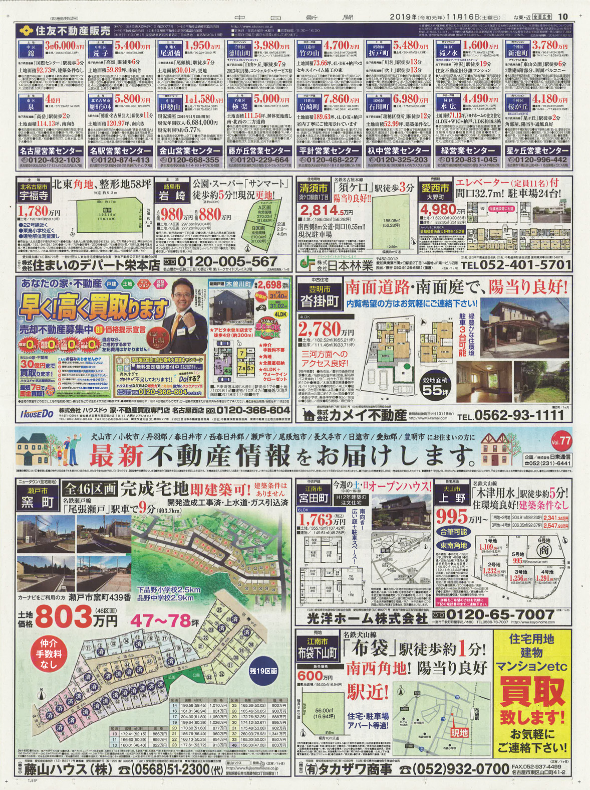 7/11掲載の中日新聞市民版、全尾張版「最新不動産情報」企画がおかげを持ちまして完売致しました。ありがとうございました。