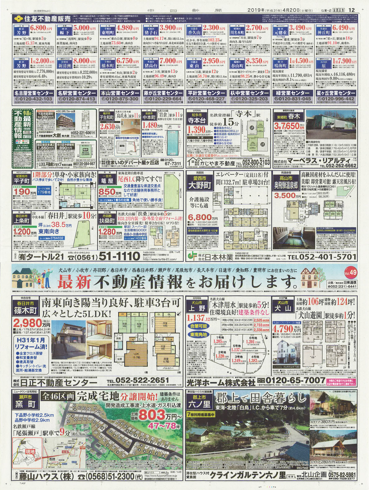 12/21掲載の中日新聞市民版、全尾張版「最新不動産情報」企画がおかげを持ちまして完売致しました。ありがとうございました。